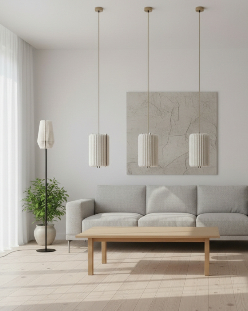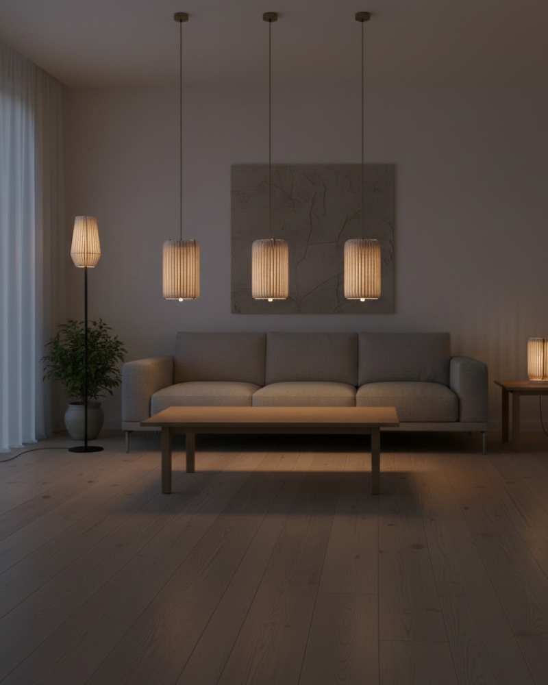 Zusammenfassung: Pendelleuchte aus Wolle und Holz